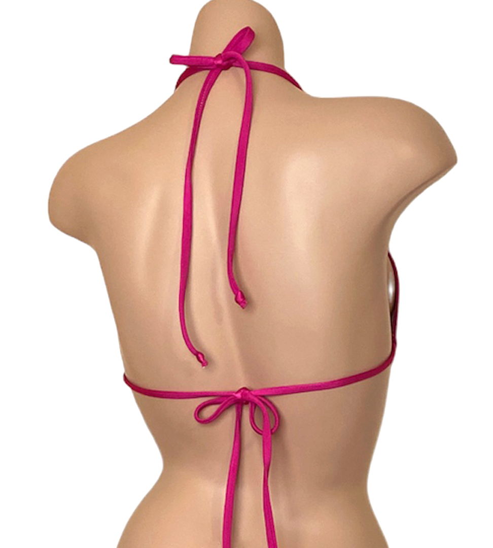 This set includes low waist, tie side, extra cheeky bikini bottoms and our classic triangle bikini top in shimmery Magenta.